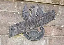 In the town there is a metal plaque to General Sikorski and the Polish troops commemorating the visit of King George VI and Queen Elizabeth to the town on 7 March 1941. The metal plaque is located on a wall on Market Street below Forfar Sheriff Court. It was here on 7 March 1941 that the Royal couple, along with General Sikorski, took the salute in the march past of the Polish troops.[18]