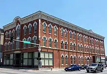 The Forrest Block was constructed in 1875 by John Forrest as a commercial block. Forrest was a capitalist who invested his financial resources in several buildings downtown. This is the location of the homestead where he lived for 33 years before he redeveloped it. It is one of a number of large commercial buildings in Davenport that were designed in an elaborate Italianate style during the decade after the American Civil War.[3] Prominent Davenport architect Frederick G. Clausen designed the building and J.H. Whittaker was the general contractor. The building is designed to have retail businesses on the main floor and professional offices on the upper floors.[4]