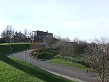 Furthermore, several of the old hospital buildings remain in place as part of the school.[34][35] The Music House (the former 'insane asylum') in the school grounds and the “Crimea Wing” teaching block (the original Napoleonic-era hospital) are both listed buildings,[8] with some of the old hospital ward numbers still visible on the Crimea Wing's walls. Several other buildings also date to the period of use as a hospital, including the North Block (which was first erected as a temporary building to house the Army Medical School in 1860)[36] and the West Wing of the 1914 extension (its main central block having been destroyed in a fire in 1973).[37]