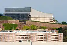 Fort Regent is a 19th-century fortification and leisure centre on Mont de la Ville (Town Hill), in St. Helier, Jersey.[1][2] The fort is in close proximity to the fortified South Hill Engineers Barracks at La Collette and overlooks the 16th-century Elizabeth Castle and harbour to the west.