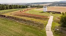 Reconstruction of the "first generation" border fence as erected in 1952, with control strip in the foreground.