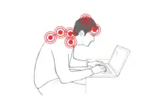 Forward head posture (FHP)[1] is an excessively kyphotic (hunched) thoracic spine. It is clinically recognized as a form of repetitive strain injury. The posture can occur in dentists,[2] surgeons,[3] and hairdressers,[4] or people who spend time on electronic devices. It is one of the most common postural issues. There is a correlation between forward head posture and neck pain in adults, but not adolescents.[5]