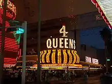 The Four Queens Hotel and Casino is located in downtown Las Vegas on the Fremont Street Experience. The 690-room hotel and 27,269 sq ft (2,533.4 m2) casino is owned and operated by TLC Casino Enterprises, which acquired the property from the Elsinore Corporation in 2003.[1]