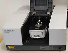 Fourier-transform infrared spectroscopy (FTIR)[1] is a technique used to obtain an infrared spectrum of absorption or emission of a solid, liquid, or gas. An FTIR spectrometer simultaneously collects high-resolution spectral data over a wide spectral range. This confers a significant advantage over a dispersive spectrometer, which measures intensity over a narrow range of wavelengths at a time.