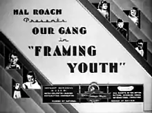 Framing Youth is a 1937 Our Gang short comedy film directed by Gordon Douglas.[1] It was the 158th Our Gang short (159th film, 70th talking short, and 71st talking film) that was released.