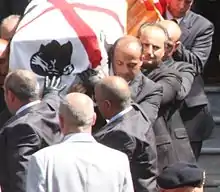 The funeral took place in his hometown, Sassari, at the Church of San Giuseppe.[48] Cossiga is buried in the public cemetery of Sassari, in the family tomb, not far from one of his predecessors as President of Italy, Antonio Segni.[49]