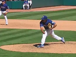 Cordero spent part of the 2002 season with Oklahoma, playing in 11 games, going 0–2 with a 5.84 ERA, while earning two saves. In Texas, Cordero earned his first career MLB save on June 19, 2002, striking out all three batters he faced in the tenth inning in a 7–4 win over the Chicago Cubs at Wrigley Field. He had a solid season with the Rangers, going 2–0 with a 1.79 ERA, while earning 10 saves. Cordero began the 2003 season as the set-up man for closer Ugueth Urbina, however, the Rangers traded Urbina to the Florida Marlins in July, and Cordero became the Rangers' closer.[4] Cordero earned 12 saves during the last two months of the season. Overall, Cordero was 5–8 with a 2.94 ERA and 15 saves in 73 games pitched.