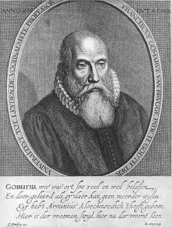 Franciscus Gomarus (François Gomaer; 30 January 1563 – 11 January 1641) was a Dutch theologian, a strict Calvinist and an opponent of the teaching of Jacobus Arminius (and his followers), whose theological disputes were addressed at the Synod of Dort (or Dordrecht) (1618–19).