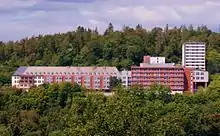 With the stream of refugees after the Second World War, Frankenberg's population rose sharply by two thousand, requiring that the town's building area be expanded. Already before currency reform in 1948, the Frankenberg district had begun building the district hospital on the Goßberg, to which a nursing school and nurses' residence were added in the early 1970s. In 1975, the hospital was expanded and has since then become a modern Hessenklinik ("Hesse Clinic"). Since 1962, Frankenberg has been a garrison town. In 1962–1963, the problem of sewage disposal was solved by building a sewage treatment plant, which was expanded in 1978. The rising demand for water was satisfied by boring deep wells and building both elevated water tanks and pumping works. Also rising was demand for electricity and this was satisfied by building new 20 kV loop line and new transformer stations. The existing schools (Ortenbergschule, Edertalschule, Burgwaldschule) were expanded into modern schools and in Wermersdorf, the Wigand-Gerstenberg-Schule (named after the chronicler) was newly built. The district vocational school, which had been housed in the barracks at the sporting ground on the Eder since 1950, was newly built in the early 1960s on Marburger Straße and expanded into an effective vocational education centre with a vocational technical school and upper school for engineering. Near Geismarer Straße, the Friedrich-Trost-Schule (school for students with learning disabilities) was built. From it grew in the early 1980s the Kegelberg-Schule (school for educables). Late in the 1970s, there came into being on the Kegelberg a workshop for those with disabilities and an integrative kindergarten sponsored by the Lebenshilfe-Werk ("Assisted Daily Living Works")