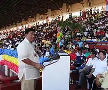 Franklin Magtunao Drilon (born November 28, 1945) is a Filipino lawyer and former politician.[2] Drilon is the acknowledged father of Corporate Lawyers in the Philippines, having sponsored and wrote the Revised Corporation Code in 2018.[3] He had the longest tenure in the Senate of the Philippines (tied with Lorenzo Tañada and Tito Sotto), having served four non-consecutive terms overall: from 1995 to 2007 and 2010 to 2022. He has served thrice as president of the Senate: in 2000, from 2001 to 2006, and from 2013 to 2016.