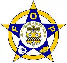 The Fraternal Order of Police (FOP) is a fraternal organization consisting of sworn law enforcement officers in the United States. It reports a membership of over 355,000 members organized in 2,100 local chapters (lodges), state lodges, and the national Grand Lodge. The organization attempts to improve the working conditions of law enforcement officers and the safety of those they serve through education, legislation, information, community involvement, and employee representation.[1]