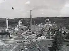 During the 1930s and '40s the factories returned to private ownership and were transformed into a full scale paper mill. As a result of the Swedish neutrality in World War II and the following lack of foreign competition and the Swedish economic boom during the 1940s and '50s the paper mill in Fredriksberg got a stronger economic position.[6] This time could in many ways be described as Fredriksberg's industrial golden age. The town's population culminated during the epoch with about 2,000 inhabitants, and the economy was good.