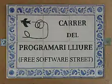 Free Software Street (Catalan: Carrer del Programari Lliure) is a street in the town of Berga in Catalonia, Spain. It is the first street in the world dedicated to the free software movement. It was officially opened on 3 July 2010.[1][2]