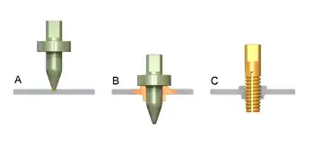 Friction drilling is a method of making holes in metal in which the material is pushed out of the way with the aid of heat from friction. The process is also called thermal drilling, flow drilling, form drilling, or friction stir drilling.[1]