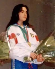 Genoese by birth but Venetian by adoption,[3] world champion in Nimes 2001 with the azzurro dream foil team: Valentina Vezzali, Giovanna Trillini and Diana Bianchedi (in that circumstance she replaced the injured Margherita Granbassi),[2] after her sports career she got married with the teammate and Olympic champion with the team foil at Athens 2004 Salvatore Sanzo,[4] the couple had two children, Virgina (born 2005) and Alessandro (born 2007).[5]