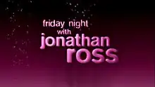 Friday Night with Jonathan Ross[2] was a British chat show presented by Jonathan Ross and broadcast on BBC One between 2001 and 2010. The programme featured Ross' take on current topics of conversation, guest interviews (usually three per show) and live music from both a guest music group and the house band. First broadcast on 2 November 2001, the show began its final series in January 2010 and ended on 16 July 2010.[3]