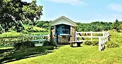 Fritz Chapel is a historic religious structure located northwest of Bellevue, Iowa, United States. The small roadside chapel was built by Mathias Fritz (1819-1889) in 1852. Fritz immigrated with his family to the United States from Luxembourg that same year. He built this chapel as an act of thanksgiving for the safe journey. The roughly 8-by-7-foot (2.4 by 2.1 m) structure has limestone walls on three sides and is open on the front.[2] It is capped with a gable roof. The walls inside the chapel are plastered, and it houses a small stone altar and a hand-carved crucifix. Located on the north side of a gravel road, it is surrounded by a picket fence. It was listed on the National Register of Historic Places in 1991.[1]