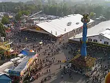 It weighs 3.5 tons and is remains the landmark of the Cannstatter Wasen in Stuttgart although it is towered by numerous roundabouts. Already at the first celebration in 1818 there was a fruit column as landmark, which had been sketched and built by the master of building of yards of Wuerttemberg at that time, Nikolaus Thouret.