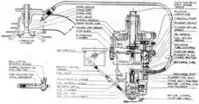 The Electrojector patents were subsequently sold to Bosch, who developed the Electrojector into the Bosch D-Jetronic.[49] The D-Jetronic was produced from 1967-1976 and first used on the VW 1600TL/E. The system was a speed/density system, using engine speed and intake manifold air density to calculate the amount of fuel to be injected. In 1974, Bosch introduced the K-Jetronic system, which used a continuous flow of fuel from the injectors (rather than the pulsed flow of the D-Jetronic system). K-Jetronic was a mechanical injection system, using a plunger actuated by the intake manifold pressure which then controlled the fuel flow to the injectors.[50]