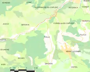 Fuilla is located in the canton of Le Canigou and in the arrondissement of Prades.