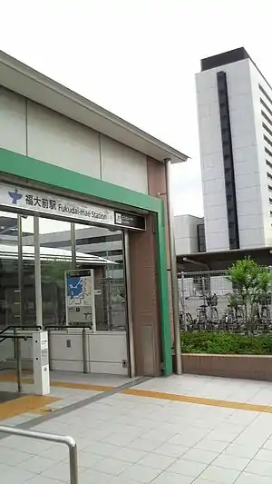 Fukudaimae Station (福大前駅) is a subway station on the Fukuoka City Subway Nanakuma Line in Jōnan-ku, Fukuoka in Japan. Its station symbol is a picture of a black kite in blue, the symbol of the Fukuoka University.