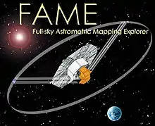 Full-sky Astrometric Mapping Explorer (or FAME) was a NASA proposed astrometric satellite designed to determine with unprecedented accuracy the positions, distances, and motions of 40 million stars within our galactic neighborhood (distances by stellar parallax possible). This database was to allow astronomers to accurately determine the distance to all of the stars on this side of the Milky Way galaxy, detect large planets and planetary systems around stars within 1,000 light years of the Sun, and measure the amount of dark matter in the galaxy from its influence on stellar motions. It was to be a collaborative effort between the United States Naval Observatory (USNO) and several other institutions. FAME would have measured stellar positions to less than 50 microarcseconds. The NASA MIDEX mission was scheduled for launch in 2004. In January 2002, however, NASA abruptly cancelled this mission, mainly due to concerns about costs, which had grown from US$160 million initially to US$220 million.