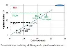 The main objectives of a R&D on 16 T Nb3Sn dipole magnets for a large particle accelerator are to prove that these types of magnets are feasible in accelerator quality and to ensure an adequate performance at an affordable cost. Therefore the goals are to push the conductor performance beyond present limits, to reduce the required "margin on the load line" with consequent reduction of conductor use and magnet size and the elaboration of an optimized magnet design maximizing performance with respect to cost.[20][21]
