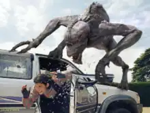 The central story of Primeval revolves around time portals (called "anomalies") opening up and letting through various prehistoric creatures into the present. While making the programme, the producers concluded that anomalies should logically be able to connect the present to the future as well.[1] The future predators are flightless macropredatory future descendants of bats about the size of lions. They walk on their knuckles and are quadrupedal, though are also able to run and rear up bipedally at times. With their elongated arms, evolved from the wings of their ancestors, they are also able to leap and climb. Since the predators rely on advanced echolocation to hunt, their eyes have atrophied away.[2][3]
