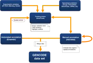 There are several analysis groups in the GENCODE consortium that run pipelines that aid the manual annotators in producing models in unannotated regions, and to identify potential missed or incorrect manual annotation, including completely missing loci, missing alternative isoforms, incorrect splice sites and incorrect biotypes. These are fed back to the manual annotators using the AnnoTrack tracking system.[18] Some of these pipelines use data from other ENCODE subgroups including RNASeq data, histone modification and CAGE and Ditag data. RNAseq data is an important new source of evidence, but generating complete gene models from it is a difficult problem. As part of GENCODE, a competition was run to assess the quality of predictions produced by various RNAseq prediction pipelines (Refer to RGASP below). To confirm uncertain models, GENCODE also has an experimental validation pipeline using RNA sequencing and RACE.[16]