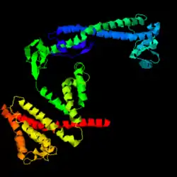 The protein is 632 amino acids long.[3] It has 19 exons and two polyadenylation signals.[3] Its sequence only partially matches a Kozak consensus sequence.[3]
