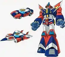 Braiger is primarily a flying car referred to in the series as Brai-Thunder that can activate synchron energy to grow in size for up to twenty four hours by transporting matter from another universe onto itself. Upon doing this the Brai-Thunder can transform into its shuttle form, Brai-Star. If needed the synchron energy can be charged up to maximum capacity, allowing the Brai-Star to transform into Braiger.[1][2]