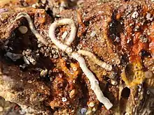 Galeolaria caespitosa is a worm of the family Serpulidae, casually referred to as Sydney coral when found in dense aggregations. It is an Australian inter-tidal tube worm which lives within a hard tube like shell, which prevents desiccation at high tide. Black feathery gills emerge when it is underwater for it to filter feed on plankton.[1][2][3][4]