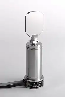 Mirror galvanometer systems are used as beam positioning or beam steering elements in laser scanning systems. For example, for material processing with high-power lasers, closed loop mirror galvanometer mechanisms are used with servo control systems. These are typically high power galvanometers and the newest galvanometers designed for beam steering applications can have frequency responses over 10 kHz with appropriate servo technology. Closed-loop mirror galvanometers are also used in similar ways in stereolithography, laser sintering, laser engraving, laser beam welding, laser TVs, laser displays and in imaging applications such as retinal scanning with Optical Coherence Tomography (OCT) and Scanning Laser Ophthalmoscopy (SLO). Almost all of these galvanometers are of the moving magnet type. The closed loop is obtained measuring the position of the rotating axis with an infrared emitter and 2 photodiodes. This feedback is an analog signal.