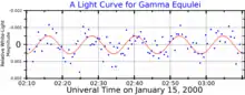 γ Equulei undergoes rapid periodic variations in brightness, which places it among the rapidly oscillating Ap (roAp) stars.[5] The apparent magnitude varies between extremes of +4.58 and +4.77. It shows pulsations in several periods near 12 minutes. The strongest pulsation is at 11.7 minutes; others are found at 11.9, 12.2, and 12.4 minutes. These are identified as a series of even and odd p-mode (pressure-induced) pulsations.[13]