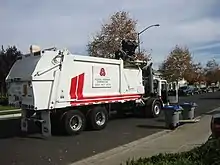 An automated side loader only needs one operator, whereas a traditional rear load garbage truck may require two or three people,[8] and has the additional advantage of reducing on the job injuries due to repetitive heavy lifting. Due to these advantages, ASLs have become more popular than traditional manual collection. Typically an automated side loader uses standardized wheeled carts compatible with the truck's automated lift.[9]