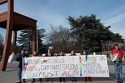 Protest organized by GayRussia at the United Nations in Geneva, Switzerland, 16 February 2009[1]