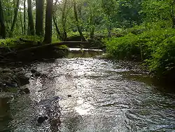 The Geiselbach is a right tributary of the Kahl in the northern Spessart in Bavaria and Hesse, Germany. It is 5,2 km (3,2 mi) long and begins at the confluence of multiple headstreams in Geiselbach. The largest tributary is the Omersbach. It discharges near the Teufelsmühle ("Devil's Mill"). The Geiselbach flows through the Teufelsgrund ("Devil's Valley") to Hüttelngesäß and forms the border between Hesse and Bavaria. Near the village Brücken it empties into the Kahl.