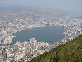Gejiu (Chinese: 个旧, geh-JOO;[1] Hani: Goqjef; formerly known as Kochiu) is a county-level city in Honghe Hani and Yi Autonomous Prefecture, Yunnan Province, China, with 202,000[note 1] urban inhabitants (ranked 14th largest city in Yunnan).[2] It is the site of China's largest tin deposits and its main industry is mining.