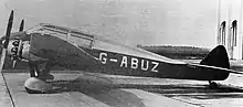 The first production design was the Monospar ST-4, a twin-engined low-wing monoplane with a fixed tailwheel landing gear and folding wings for ground storage.[3] Powered by two Pobjoy R radial engines, the first aircraft (G-ABUZ) first flew in May 1932, and was followed by five production aircraft. The Monospar ST-4 Mk.II, an improved variant with minor differences, followed with a production run of 30. In 1933, the Monospar ST-6 appeared, a similar aircraft to the ST-4, with manually retractable landing gear and room for an extra passenger. The Monospar ST-6 was only the second British aircraft to fly with retractable landing gear (the first, the Airspeed Courier, was flown a few weeks earlier). Another Monospar ST-6 was built, and two ST-4 Mk.IIs were converted. GAL then produced a developed version, the Monospar ST-10, externally the same but powered by two Pobjoy Niagara engines, an improved fuel system, and aerodynamic refinements.[2][4] The Monospar ST-11 was developed from the ST-10, with retractable landing gear, and two were built for export to Australia.[1][5][6] A production batch of ten Monospar ST-12 aircraft was based on the ST-11, but with de Havilland Gipsy Major engines and fixed landing gear.[1]