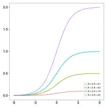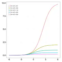 The generalized logistic function or curve is an extension of the logistic or sigmoid functions. Originally developed for growth modelling, it allows for more flexible S-shaped curves. The function is sometimes named Richards's curve after F. J. Richards, who proposed the general form for the family of models in 1959.