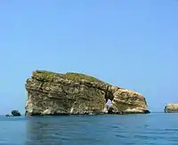 Situated near main island. The western part is littered with small boulders, while much of the vegetation occurs in the middle part of the islet. In island there is sea cave occurs as a big hole in the middle of the islet. Species of plants: Arthrocnemum macrostachyum, Anthemis urvilleana, Inula crithmoides, Lotus cystisoides, Limonium, Sporbolus pungens.[4] | ![]() | |