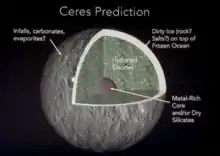 Ceres's oblateness is consistent with a differentiated body, a rocky core overlain with an icy mantle.[4]