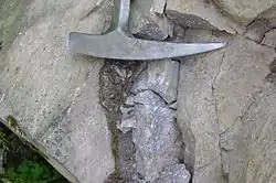 The Helvetic Domain (also known as the Helvetic Nappes) (German: Helvetikum) strikes approximately east-west in a strip, mostly only a few hundred metres wide, right at the northern edge of the Alps with siliciclastic and carbonate rocks of the Cretaceous and the early Tertiary that are overthrust towards the north onto the southern edge of the Molasse Basin. There are mainly shallow marine formations that are, for example, rich in nummulites (the Kressenberg Formation).[6][7] They represent the inner continental shelf on the southern edge of pre-Alpine Europe and they were not affected by the folding and overthrusting processes of the Alpine Orogeny until relatively late.