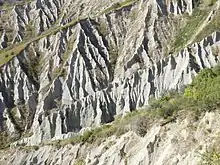 During the Miocene, the ongoing uplift affected Alps as well as the Paleo-Apenninic chain and backarc to foredeep basins continued developing. In the Southern Alps, Gonfolite Lombarda and Molassa Bellunese flysch started filling the Po basin. Around the Apennines and Sicily, late Miocene evaporites were left by the Messinian salinity crisis (for example, Gessosso-Solfifera Formation).[9] The opening of backarc basins like the Thyrrenian Sea caused the Calabro-Peloritan block to be separated from Sardinia, moving further south-east and finally included in the southern apenninic arc. Uplift continues today and since the Pleistocene, Calabrian sedimentary rocks have uplifted more than one kilometer.[10]
