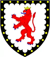 Catherine Cornewall's family claimed descent from a younger branch of the de Cornewall family, Barons of Burford, lineally descended from Sir Richard of Cornwall[1] (d.1296, slain by an arrow at the Siege of Berwick), a natural son of Richard, 1st Earl of Cornwall (1209-1272), (2nd son of King John) by his mistress Joan de Bath. Sir Richard of Cornwall married Joan FitzAlan, daughter of John FitzAlan, 6th Earl of Arundel, and by her had three sons and a daughter. His daughter, Joan of Cornwall, married Sir John Howard, from whom the Howard family, Dukes of Norfolk, are descended.[13] The arms of de Cornwall were: Argent, a lion rampant gules ducally crowned or a bordure engrailed sable bezantee,[1] being the arms of Richard, 1st Earl of Cornwall with difference a bordure engrailed.