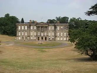 Crewe was called upon to serve as High Sheriff of Derbyshire in 1821, and one of his first acts was to do away with the Assize Ball publishing a letter "showing how cruel and heartless it appeared that any person should be found engaged in worldly mirth and amusement on so solemn an occasion, when so many poor creatures were trembling on the eve of their trial, perhaps for their lives."[3] After several years looking after his estates, he was persuaded to stand as Member of Parliament for South Derbyshire in 1835, and was returned again in 1837. His health was always poor and he retired in 1841. Crewe was a considerable philanthropist with strong Christian principles, and was considered "too conscientious for a member of Parliament".[3] Shocked by the poor conditions in which his tenants lived and worked he built schools and rebuilt the churches at Ticknall and Calke, staffing them with well educated clergy.[4] The Harpur Crewe family were great collectors, and Sir George collected paintings, stuffed birds and animals.[5] Harper Crewe became the President of the Derby Town and County Museum and Natural History Society in 1836. This organisation became Derby Museum and Art Gallery.[6]