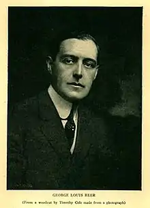 Beer served as colonial expert to President Woodrow Wilson's American Commission of Inquiry during World War I[1][2] and attended the 1919 Paris Peace Conference as a member of the American Commission to Negotiate Peace, for which he was chief of the Colonial Division in 1918-1919. He was also a member of the Mandates Commission of the League of Nations and was appointed director of the Mandatory Section of the League's Secretariat in 1919.