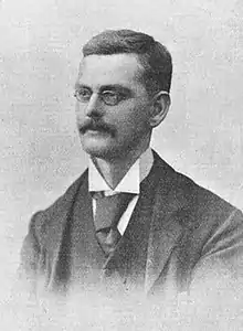 In 1900 Sinclair was appointed conductor of the Birmingham Festival Choral Society, one of whose members drew a caricature of Sinclair and his bulldog Dan, from whom he was inseparable, and who attended all rehearsals.[2] Sinclair's friend Edward Elgar depicted Dan in the Enigma Variations. The eleventh variation, in G minor, Allegro di molto headed "G.R.S." portrays Dan falling into the River Wye and, in Elgar's words, "paddling upstream to find a landing place; and his rejoicing bark on landing. G.R.S. said, 'Set that to music'. I did; here it is."[3] The variation also depicts Sinclair's impetuous character and his skilful organ pedalling.[4]