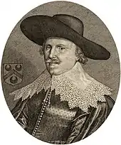 Wither had served as captain of horse in 1639 in the expedition of Charles I against the Scottish Covenanters, and his religious rather than his political convictions must be accepted as the explanation of the fact that, three years after the Scottish expedition, at the outbreak of the English Civil War, he is found definitely siding with the Parliament. He sold his estate to raise a troop of horse, and was placed by a parliamentary committee in command of Farnham Castle. After a few days occupation he left the place undefended, and marched to London. His own house near Farnham was plundered, and he himself was captured by a troop of Royalist horse, owing his life to the intervention of Sir John Denham, on the ground that so long as Wither lived he himself could not be accounted the worst poet in England.[11][12]