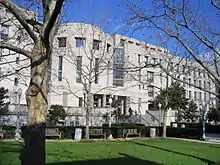 Opened as Georgetown Law School in 1870, Georgetown Law was the second (after St. Louis University) law school run by a Jesuit institution within the United States.[14][15][lower-alpha 1] Georgetown Law has been separate from the main Georgetown campus (in the neighborhood of Georgetown) since 1890, when it moved near what is now Chinatown. The Law Center campus is located on New Jersey Avenue, several blocks north of the Capitol, and a few blocks west of Union Station. Georgetown Law School changed its name to Georgetown University Law Center in 1953.[16] The school added the Edward Bennett Williams Law Library in 1989 and the Gewirz Student Center in 1993, providing on-campus living for the first time. The "Campus Completion Project" finished in 2004 with the addition of the Hotung International Building and the Sport and Fitness Center.